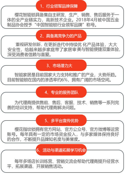 - 廣東櫻花智能科技有限公司(前身中山市櫻花鎖業(yè)有限公司)成立于2007年,是一家以智能門(mén)鎖為主體的高新技術(shù)企業(yè)。公司總部位于中國(guó)智能鎖產(chǎn)業(yè)基地——中山小欖,占地面積近40畝,現(xiàn)有員工近千人。