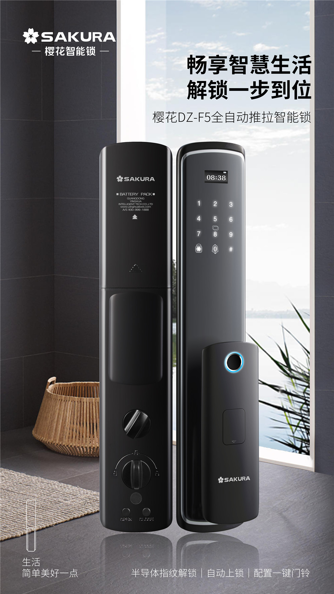 櫻花DZ-F5全自動(dòng)推拉智能鎖
